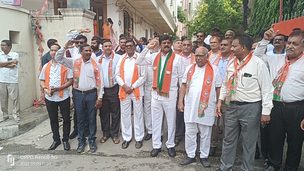 మేడ్చల్ ముచ్చట్లు; మల్కాజ్గిరి ప్రాంతంలో 60 వేలకు పైగా మాజీ సైనికులు ఉంటున్నారని హానరీ కెప్టెన్ అవదేస్ మిశ్రా వెల్లడి. భారీ సంఖ్యలో మాజీ సైనికులతో కలిసి భారతీయ జనతా పార్టీ రాష్ట్ర కార్యాలయం నాంపల్లి చేరుకున్న గోపురమన రెడ్డి టీం.గోపు రమణారెడ్డి గారి ఆధ్వర్యంలో మాజీ సైనికులు భారతీయ జనతా పార్టీ రాష్ట్ర కార్యాలయం నాంపల్లి చేరుకొని మల్కాజిగిరి అసెంబ్లీ నియోజకవర్గం నుండి ఎమ్మెల్యేగా పోటీ చేయటానికి దరఖాస్తు ఫారం నింపి ఫారం ఇవ్వటం జరిగింది.ఈ కార్యక్రమంలో మాజీ సైనికులు భారత్ మాతాకీ జై నినాదాలతో ఎమ్మెల్యే అభ్యర్థి ఫారం నింపి ఇవ్వటం జరిగింది. గోపు రమణారెడ్డి మాట్లాడుతూ ఆర్మీలో 20 సంవత్సరాల పని చేశాను ఈ ప్రాంతంలో దాదాపు 60 వేల మందికి పైగా మాజీ సైనికులు ఉన్నారు, 150,000 వేలకు మందికి పైగా ఇతర అనేక రాష్ట్రాలకు చెందిన వారు,ప్రత్యేకించి గ్రేటర్ రాయలసీమ అసోసియేషన్ ఆఫ్ తెలంగాణ ప్రాంతానికి చెందిన వారు ఉండటం విశేషం. జన్ ఔషధీ ద్వారా దాదాపు 70000 పైగా మల్కాజ్గిరి ప్రాంతంలో పీఎం జాన్ ఔషధ వల్ల లబ్ధి పొందుతున్న వారు ఉండటం అది కలిసి వచ్చే అంశం అని గోపు రమణారెడ్డి వర్గం తెలియజేస్తున్నారు .మల్కాజ్గిరి ప్రజల కోసం ఆరోగ్యమే మహాభాగ్యం అనే నినాదంతో అనేక జన్ ఔషధీ కేంద్రాలు స్థాపించి, ప్రజలకు 50 నుండి 90% తక్కువ ధరలకే అందిస్తూ వేలాది మంది ప్రజలను ఆకట్టుకోవటం విశేషం. నిరంతరం ప్రజల మనిషిగా ప్రజా నాయకుడిగా ప్రజా మనిషిగా సమాజ సేవకుడిగా అనేక కార్యక్రమాలలో పాలుపంచుకుంటూ పార్టీ కార్యక్రమాలు, సోషల్ సర్వీస్ తో ప్రతిచోట అన్నా పలికే వ్యక్తిగా తో మందికి ఆర్థిక సహాయం చేసిన వ్యక్తి. ఉచితంగా మందులు పంపిణీ చేసిన వ్యక్తి అని వేలాది మందికి ఆరోగ్య హెల్త్ క్యాంపులు పెట్టి వేలాది మందికి ఫ్రీగా అద్దాలు ఇవ్వటం ఇచ్చారన్నారు . అన్నా అంటే పలికే వ్యక్తిగా గోపు రమణారెడ్డి గారిని మల్కాజ్గిరి ప్రజలు దీవిస్తున్నారు, గోపు రమణారెడ్డి గారికి ఈసారి మల్కాజిగిరి టికెట్ తప్పకుండా వస్తుందని, తప్పకుండా టికెట్ ఇచ్చేదానికి తోడ్పాటు చేస్తారని పూర్తిగా నమ్ముతున్నానని గోపు రమణారెడ్డి అనుచరులు తెలియచేస్తున్నారు. మల్కాజ్గిరి ప్రాంతంలో దాదాపు 40 వేలకు పైగా రెడ్డి కులస్తులు ఉన్నారని వారి పూర్తి మద్దతు వారికి కుంటుందని బిజెపి, కాంగ్రెస్ నుండి గాని రెడ్డి కులం అభ్యర్థి లేకపోవడం కలిసి వచ్చే అంశం అని, అది సైనికునిగా సానుకూలత, అందరినీ కలుపుకొని పోవడం తత్వం, సైనికుని ఉండవలసిన అన్ని గుణాలు ఉండటం, సిన్సియర్, హానెస్ట్, హార్డ్ వర్కర్, నిజాయితీ గా పనిచేసే తత్వం ఇలాంటి అనేక గుణాలు కల వ్యక్తిని మల్కాజ్గిరి అభ్యర్థిగా నింపితే మంచి మెజార్టీతో గెలుస్తానని గోపురమణారెడ్డి అనుచరులు ధీమా వ్