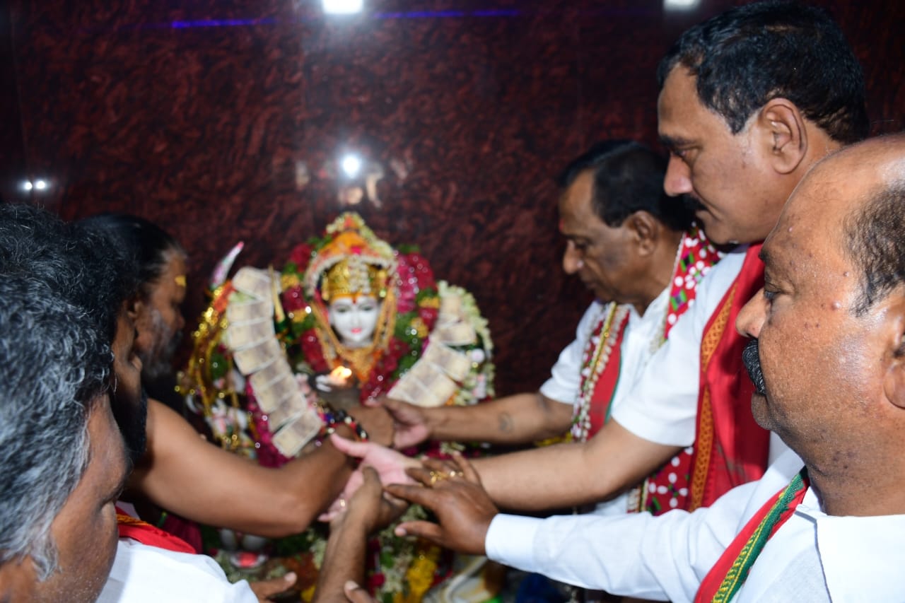 మేడ్చల్ నియోజకవర్గ పరిధిలోని తుంకుంట మున్సిపల్ పరిధిలోని దేవరయంజాల్ గ్రామం సేవాలాల్ మల్లన్న తాండాలో నూతనంగా నిర్మించిన “శ్రీ శ్రీ శ్రీ సంత్ సద్గురు సేవాలాల్ మహరాజ్, శ్రీ శ్రీ శ్రీ జగదంబ దుర్గాదేవి రామ్ రామ్ మహరాజ్” ఆలయ విగ్రహ ప్రతిష్టాపన మహోత్సవం జరిగింది . ఈ పూజ కార్యక్రమాల్లో మంత్రి మల్లారెడ్డి పాల్గొని ప్రత్యేక పూజలు నిర్వహించడం జరిగింది. విగ్రహ ప్రతిష్టాపన మహోత్సవంలో పాల్గొనడం పట్ల ఎంతో సంతోషంగా ఉందని ఆలయాల అభివృద్ధిలో ఎల్లప్పుడూ ముందుంటానాని ఈ సందర్భంగా మంత్రి అన్నారు. ఈ కార్యక్రమంలో మున్సిపల్ చైర్మన్ రాజేశ్వర్ రావు, వైస్ చైర్మన్ వాణి వీర రెడ్డి, కౌన్సిలర్లు, కో అప్షన్ సభ్యులు, మున్సిపల్ పార్టీ అధ్యక్షులు శ్రీనివాస్ రెడ్డి, నాయకులు పుల్ సింగ్, అశోక్, సేవాలాల్, మల్లన్న తాండా వాసులు తదితరులు పాల్గొన్నారు.