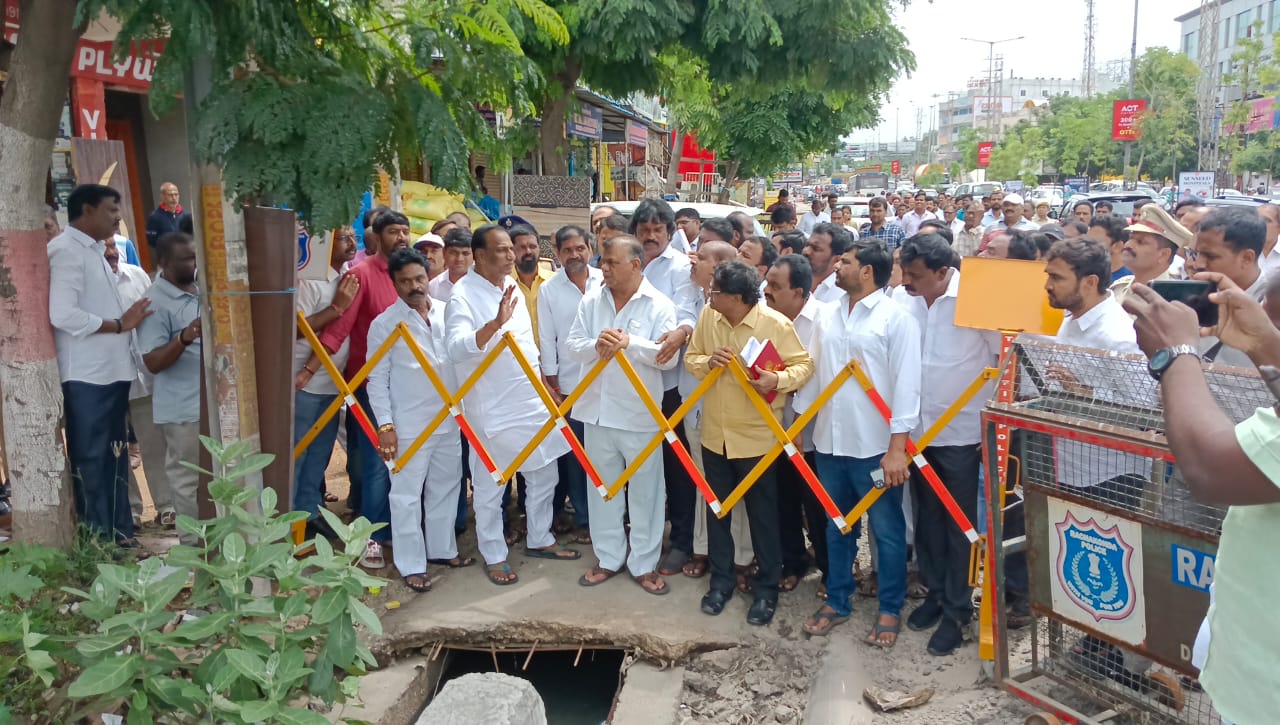 నాగారం పురపాలక సంఘ పరిధిలోని 5, 18 ,19, 20 వార్డులలో గల వరద నీటి సమస్య గురించి కార్మిక కల్పన శాఖ మంత్రి చామకూర మల్లారెడ్డి సుడిగాలి పర్యటన చేశారు. ఈ సందర్భంగా మంత్రి చామకూర మల్లారెడ్డి కాలనీలలో భారీ వర్షాల కారణంగా నీరు నిలిచి ఇబ్బందులు పడుతున్న పలు రోడ్లను పర్యవేక్షించిన అనంతరం వివిధ కాలనీ అధ్యక్షులతో, కాలనీవాసులతో మాట్లాడి ఇంజినీరింగ్ అధికారుల మ్యాప్ ప్రకారం సమస్యను బాక్స్ డ్రైనేజీ నిర్మాణం ద్వారా శాశ్వత పరిష్కారం చేస్తానని హామీ ఇచ్చారు. ఇందుకు కావాల్సిన నిధులు త్వరలోనే మంజూరు చేస్తామని తెలియజేశారు. ఈ కార్యక్రమంలో మునిసిపల్ చైర్మన్ కౌకుంట్ల చంద్రా రెడ్డి, కమిషనర్ జి రాజేంద్ర కుమార్, వైస్ చైర్మన్ బండారి మల్లేష్ యాదవ్, కౌన్సిలర్లు కో ఆప్షన్ సభ్యులు, కాలనీ ప్రజలు అధికారులు పాల్గొన్నారు.