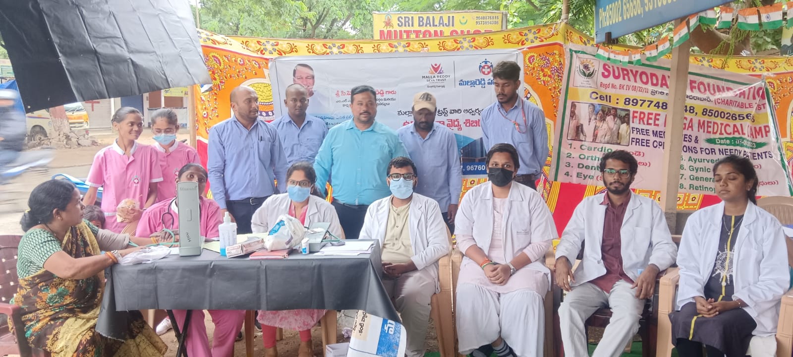 మేడ్చల్ ముచ్చట్లు ; జవహర్ నగర్ లో మల్లారెడ్డి ట్రస్ట్ సేవ ఆధ్వర్యంలో ఉచిత మెగా వైద్య శిబిరం చేపట్టారు.ఈ ఉచిత మెగా వైద్య శిబిరంలో జవహర్ నగర్ గ్రామ ప్రజలు అధిక సంఖ్యలో పాల్గొన్నారు. మల్లారెడ్డి ట్రస్ట్ సేవా ద్వారా ఉచిత పరీక్షలు చేశారు ఇందులో భాగంగా ఈసీజీ, బీపీ చెక్ అప్, బ్లడ్ షుగర్ చెకప్ తో పాటు ఉచిత మందులు ఇచ్చారు .ఈ కార్యక్రమంలో సూరారం మల్లారెడ్డి హాస్పిటల్ వైద్యులు, సిబ్బంది పాల్గొన్నారు.