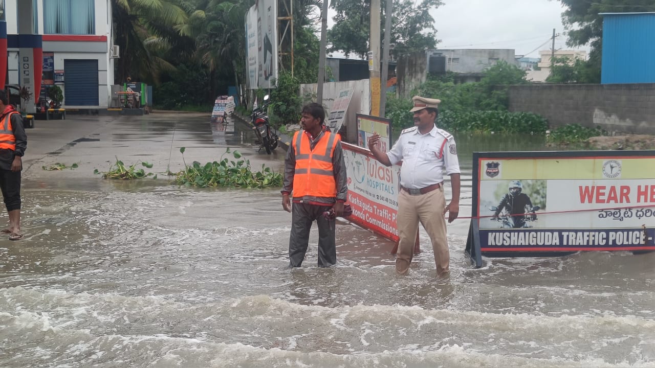 మేడ్చల్ జిల్లా కీసర మండలం నాగారం మున్సిపాలిటీ రాంపల్లి ఎక్స్ రోడ్ పూర్తిగా వర్షపు నీటితో జలమయం అయింది. స్థానిక ప్రజల వివరాలు ప్రకారం రాంపల్లి ఎక్స్ రోడ్డు నుండి కుషాయిగూడ వెళ్లే మార్గంలో చిన్నపాటి వర్షం వల్ల డ్రైనేజీ నిండిపోయి రోడ్లమీద వరద నీళ్లు పొంగిపొర్లి ప్రవహించడంతో ప్రయాణికులు తీవ్ర ఇబ్బందులకు గురవుతున్నారు. గత కొన్ని సంవత్సరాల నుండి వర్షాకాలం ఇదే పరిస్థితి కొనసాగుతుందనీ ప్రజలు ఆవేదన వ్యక్తం చేస్తున్నారు. స్థానిక మున్సిపల్ చైర్మన్, కౌన్సిలర్లు ఎవరు పట్టించుకోకపోవడం వల్ల ప్రజలు ప్రమాదాలకు గురవుతున్నారని , సరైన డ్రైనేజీ వ్యవస్థ లేకపోవడం వలన వర్షాకాలం ప్రయాణికులకు ట్రాఫిక్ ఇబ్బంది జరుగుతుందని కుషాయిగూడ ట్రాఫిక్ సబ్ ఇన్స్పెక్టర్ నాగేందర్ తెలియజేశారు.